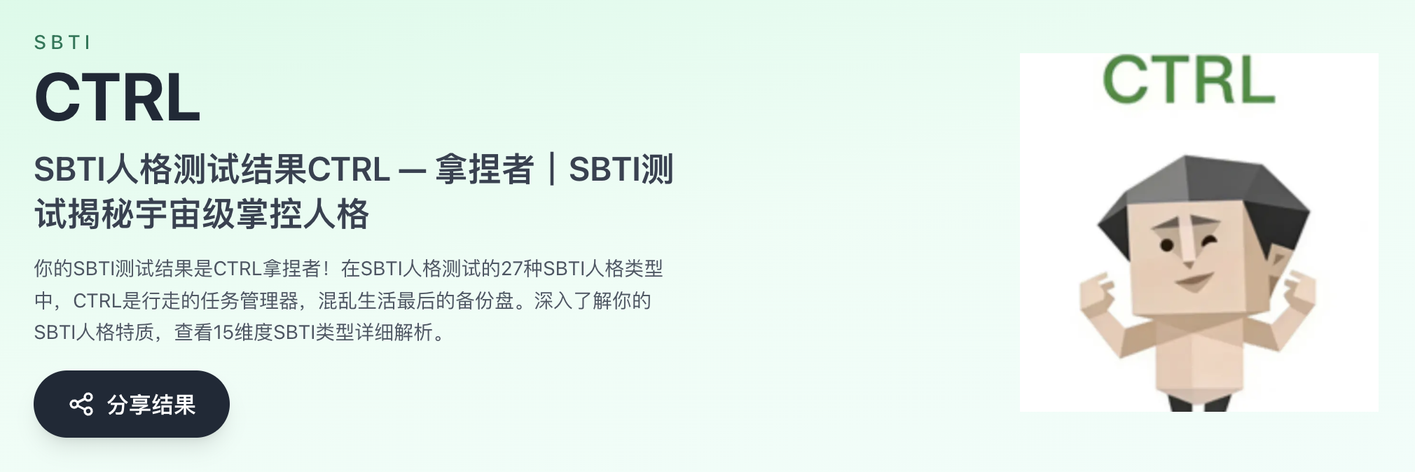 立即参加SBTI人格测试,看看你到底是不是那个传说中的"拿捏者"。也可以查看CTRL的完整人格画像,了解更多维度细节。